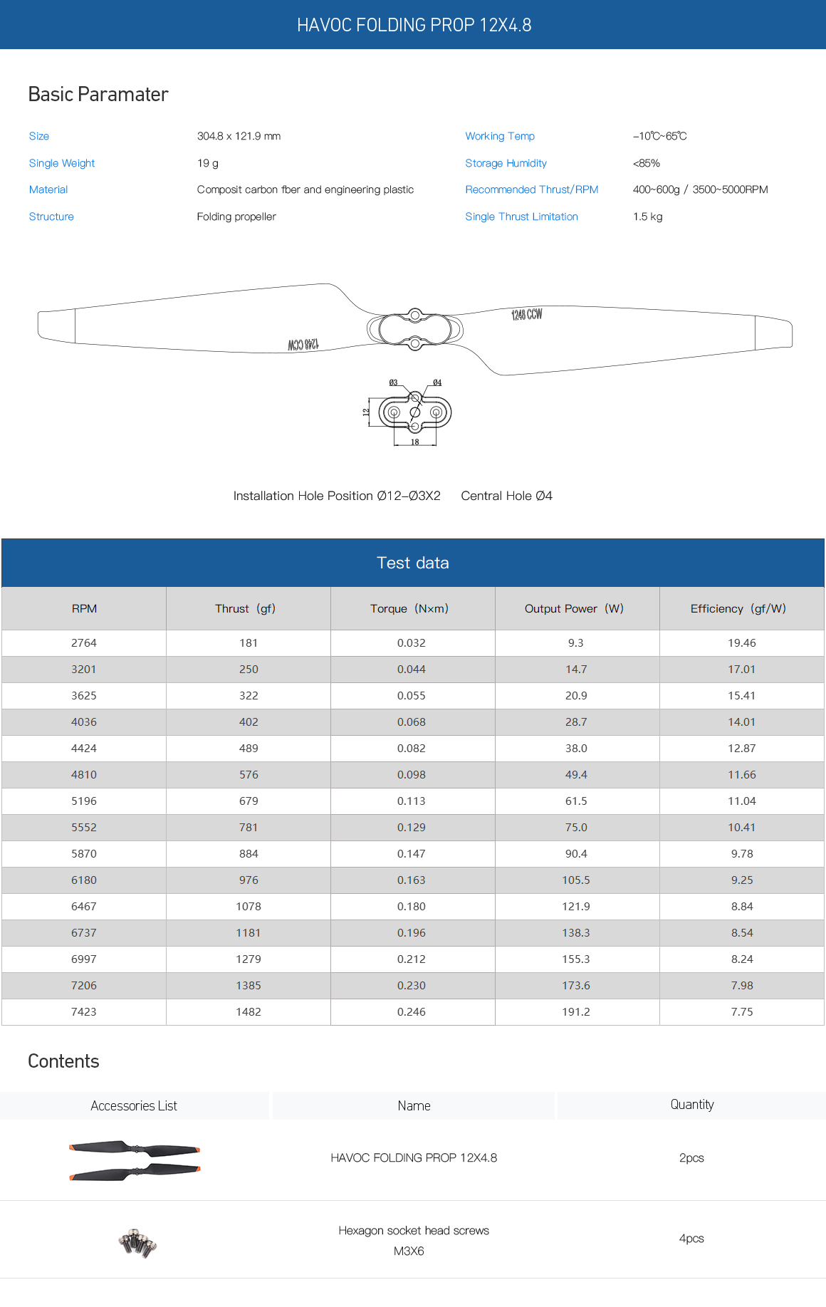 12x4.8 Inch HAVOC Polymer Folding Propeller