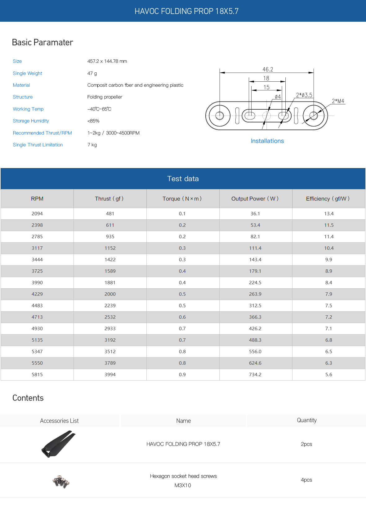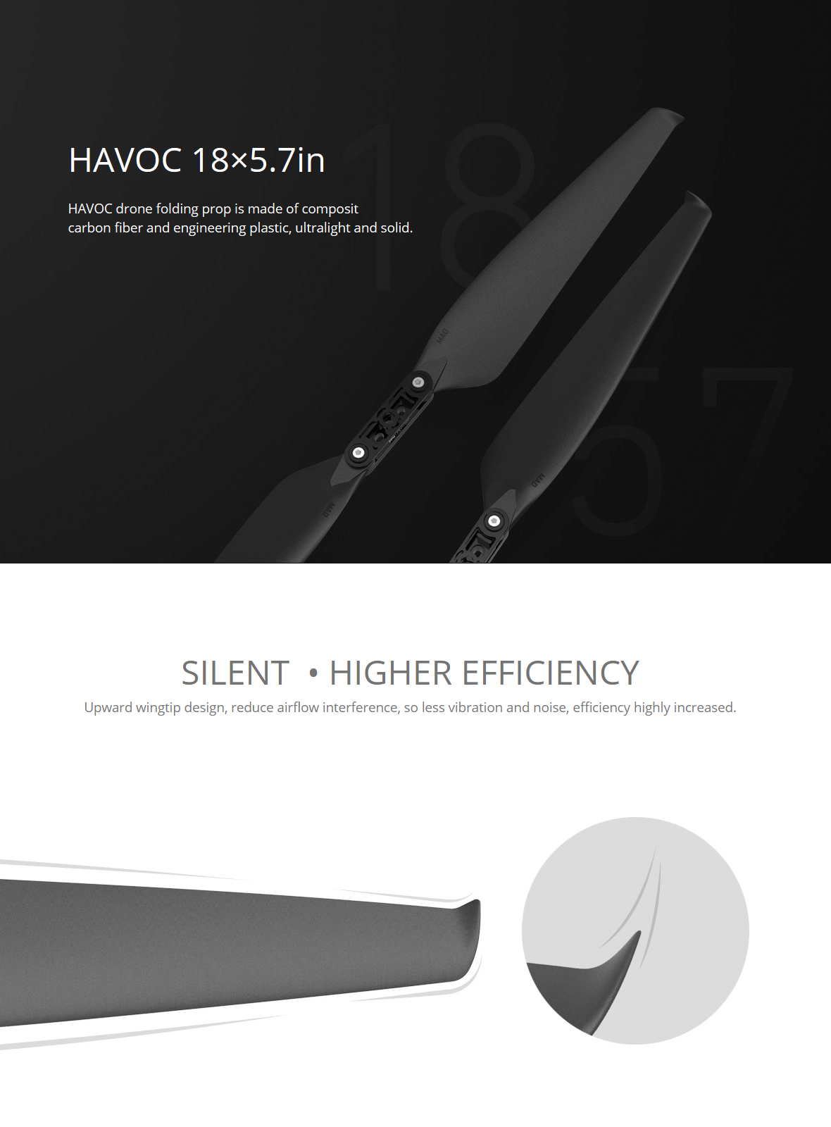 18x5.7 Inch HAVOC polymer folding propeller