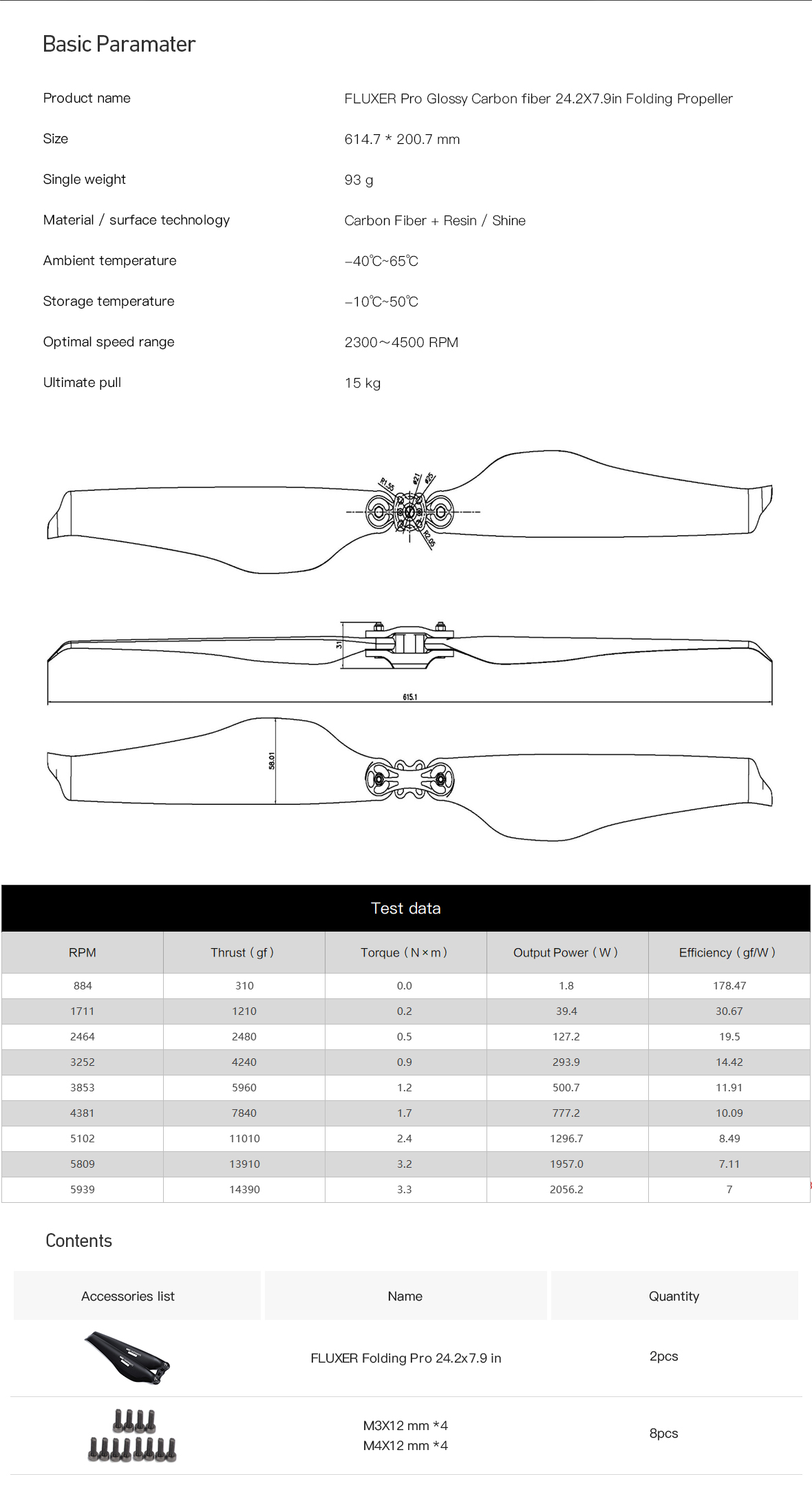 24.2x7.9 Inch FLUXER Pro Glossy Carbon fiber folding propeller