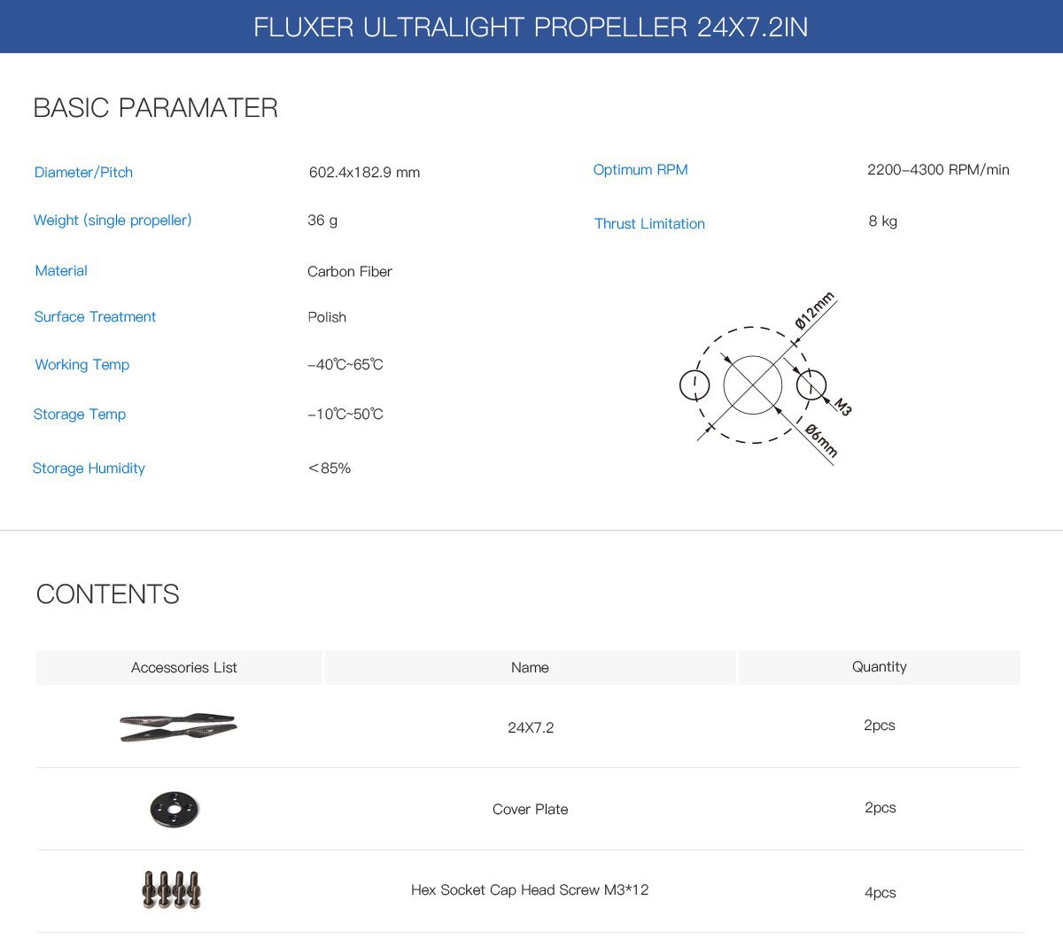 24x7.2 Inch Ultralight prop - D6-D12(M3*2)