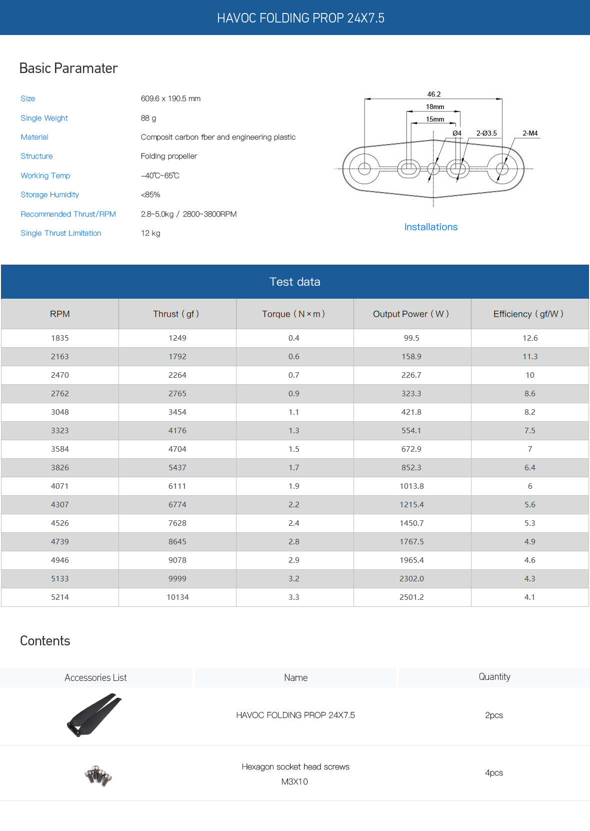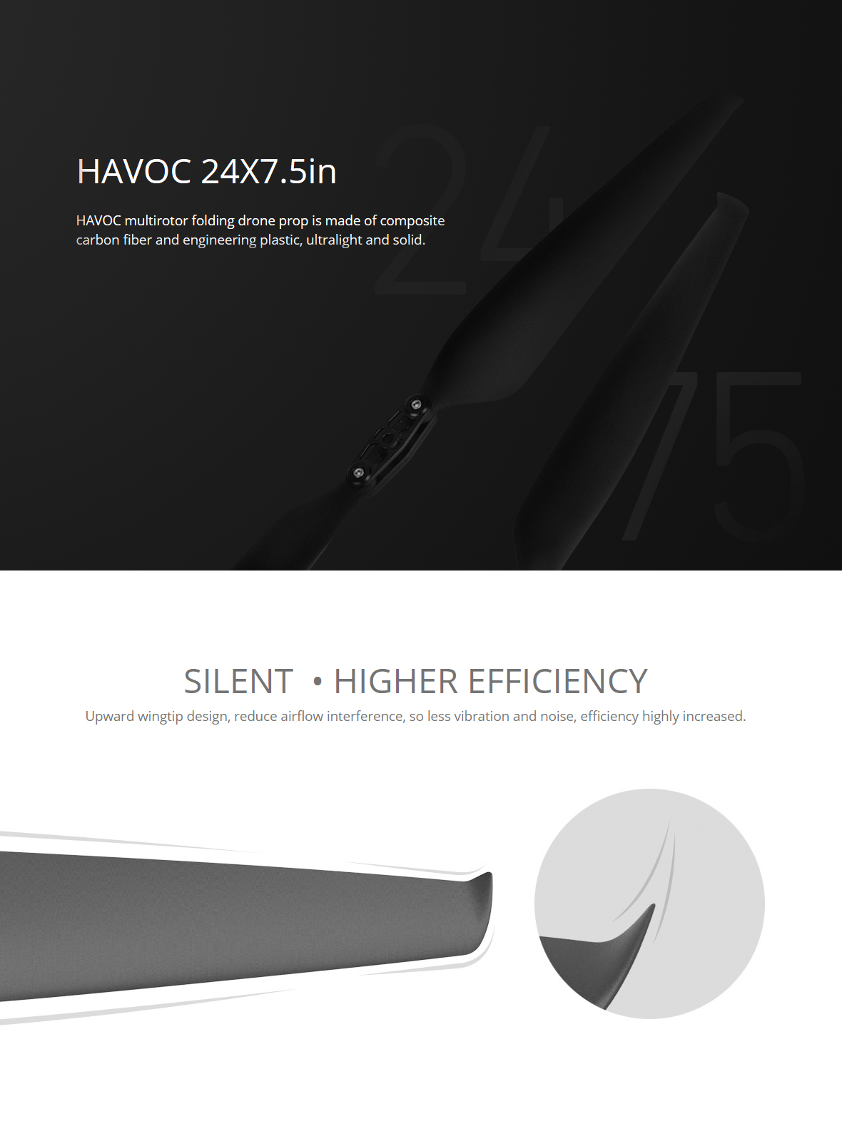 24x7.5 Inch HAVOC polymer folding prop CW+CCW 1pair