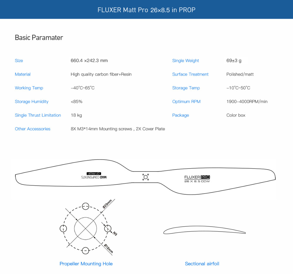 26x8.5 Inch FLUXER pro Matt carbon fiber propeller