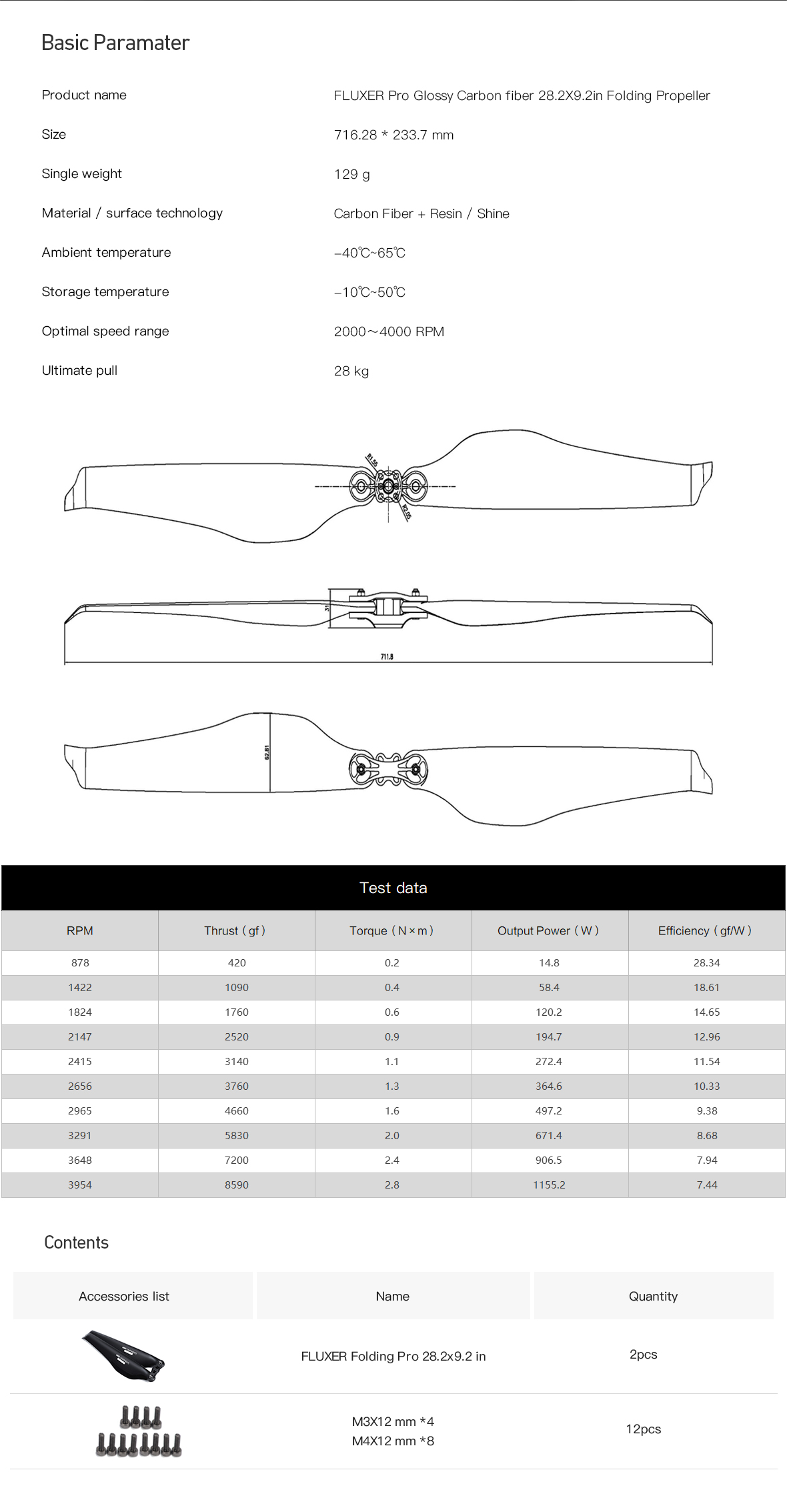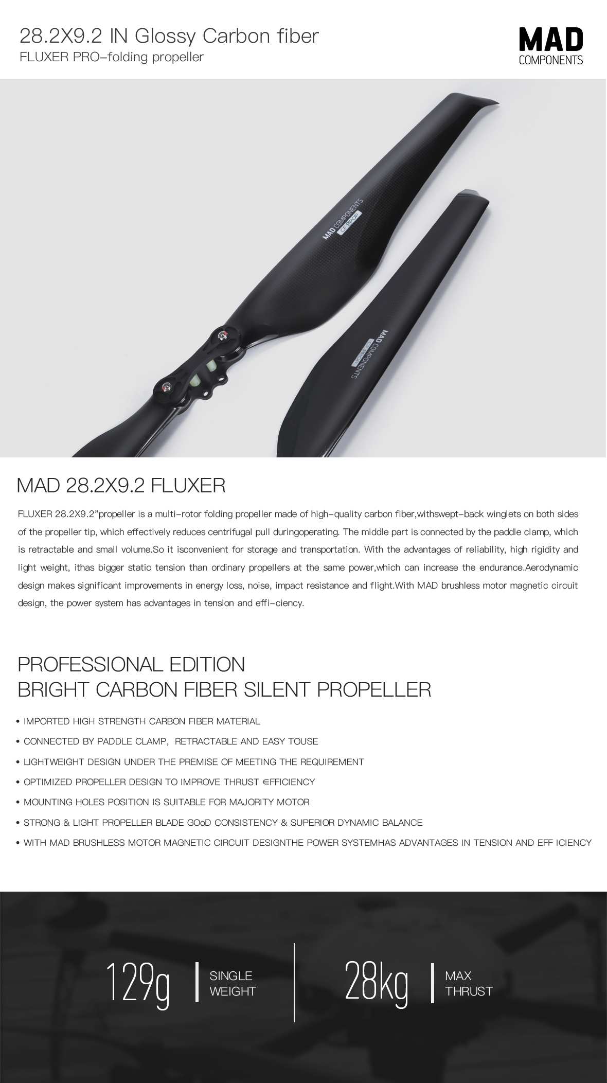 28.2X9.2 Inch FLUXER Pro Glossy Carbon fiber folding propeller