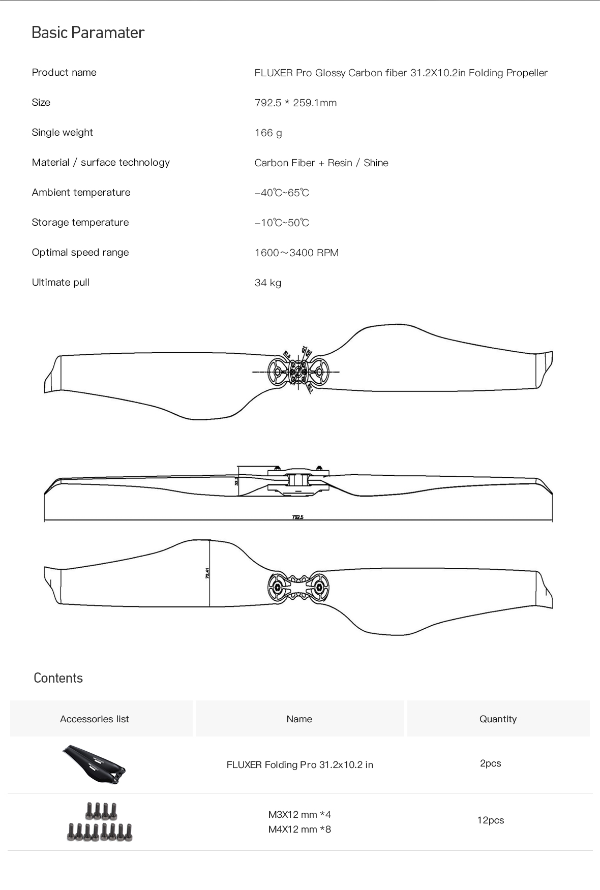 31.2x10.2 Inch FLUXER PRO Glossy Carbon fiber folding propeller