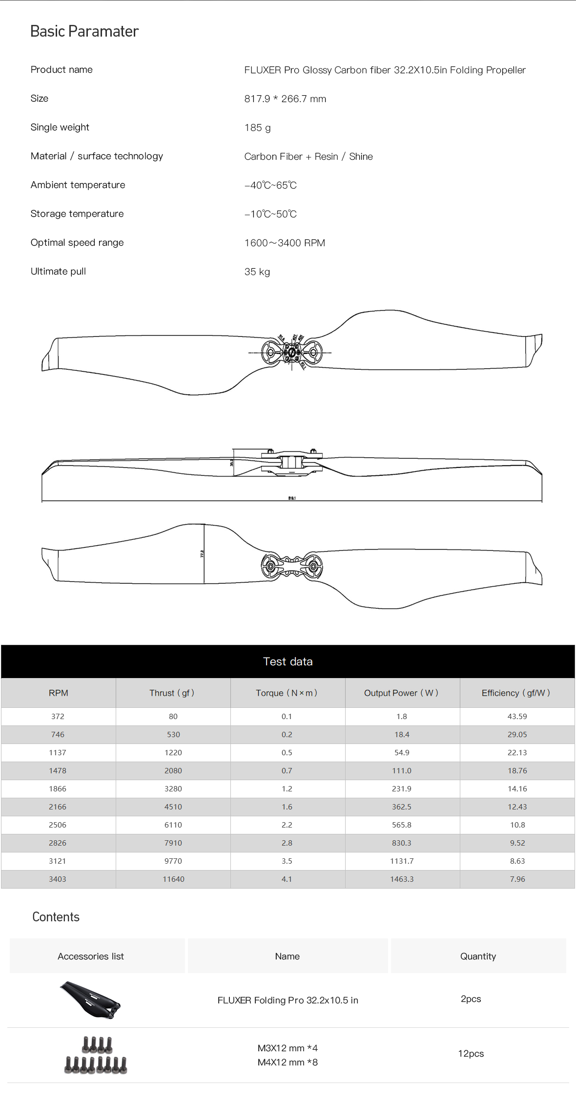 32.2x10.5 Inch FLUXER Pro Glossy Carbon fiber folding propeller