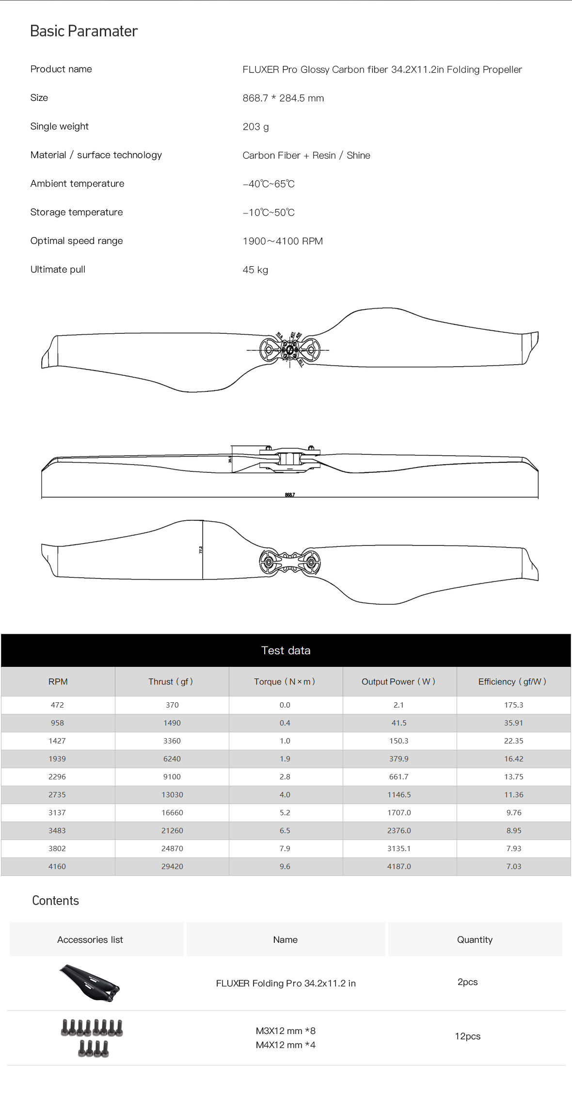 34.2X11.2 Inch FLUXER Pro Glossy Carbon fiber folding propeller