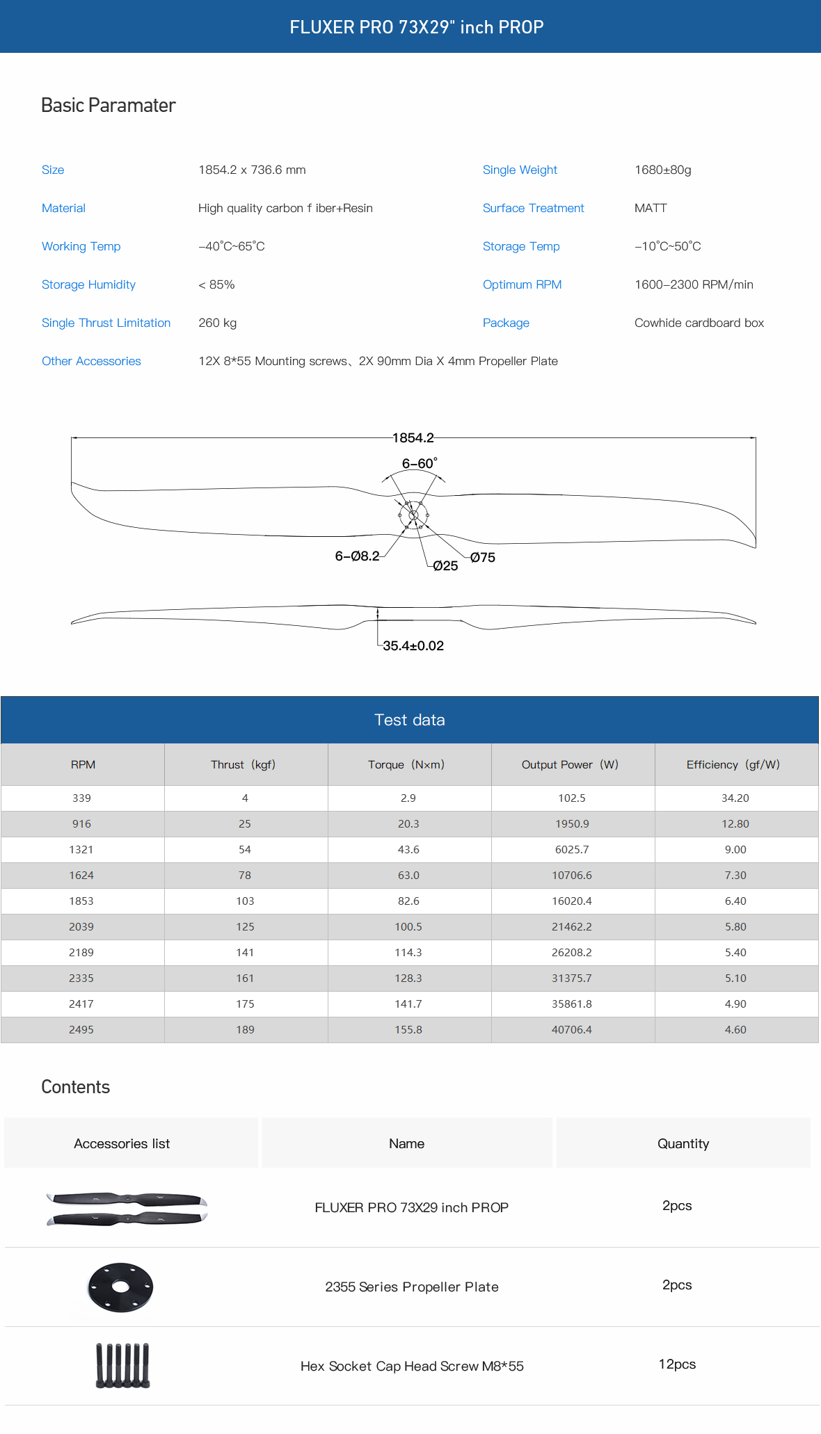 73x29 inch FLUXER PRO Carbon Fiber Propeller
