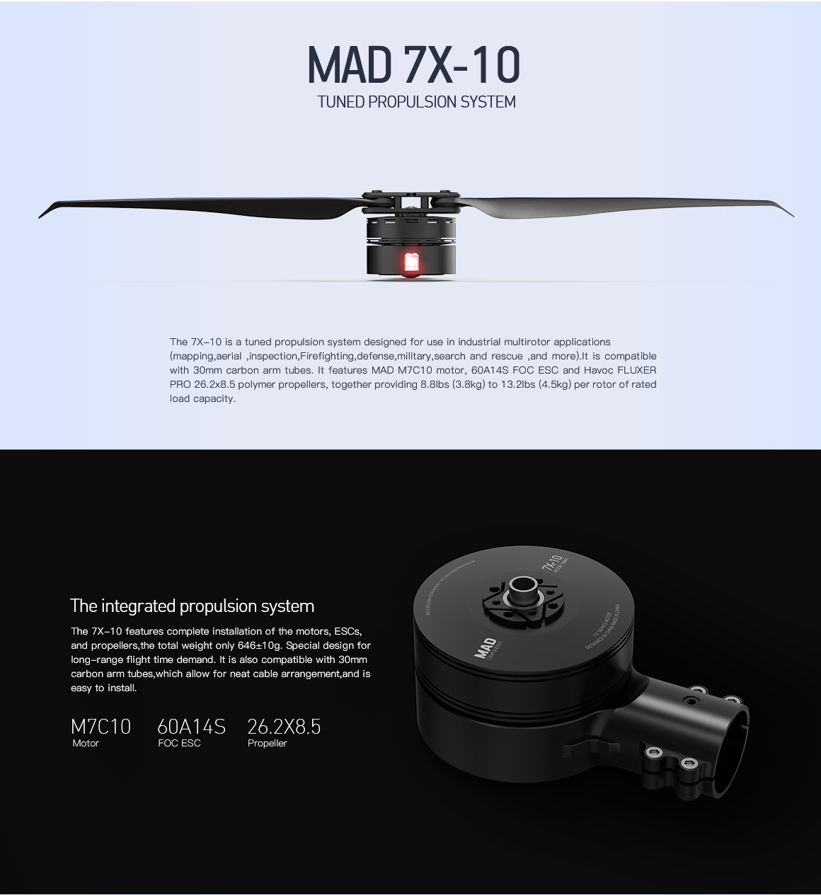 Integrated Design: Combines motor, ESC, propeller, and mount into one module for simplified assembly and optimized reliability.