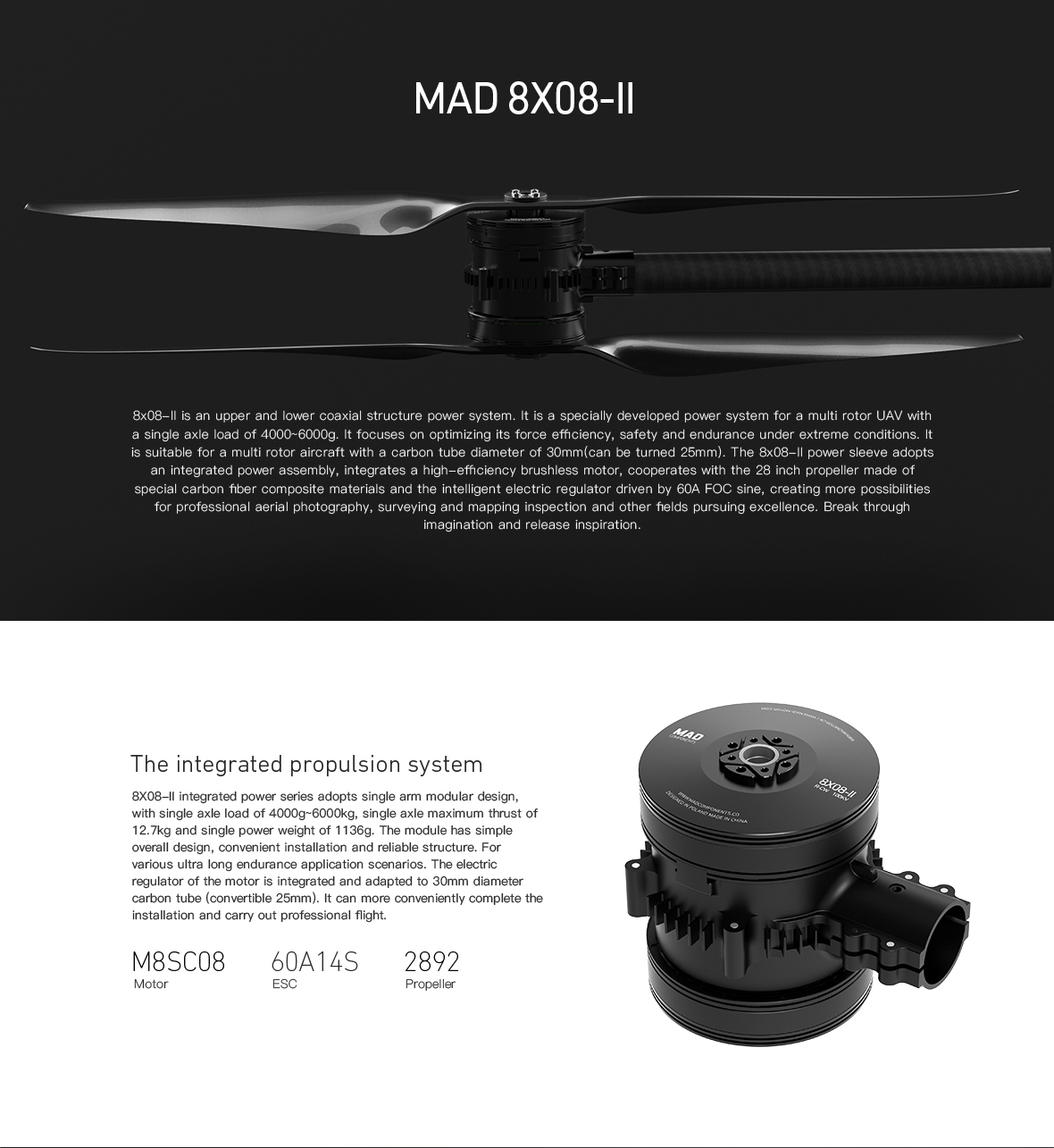 8X08-II 100KV M8SC08 Coaxial Drone Arm Set