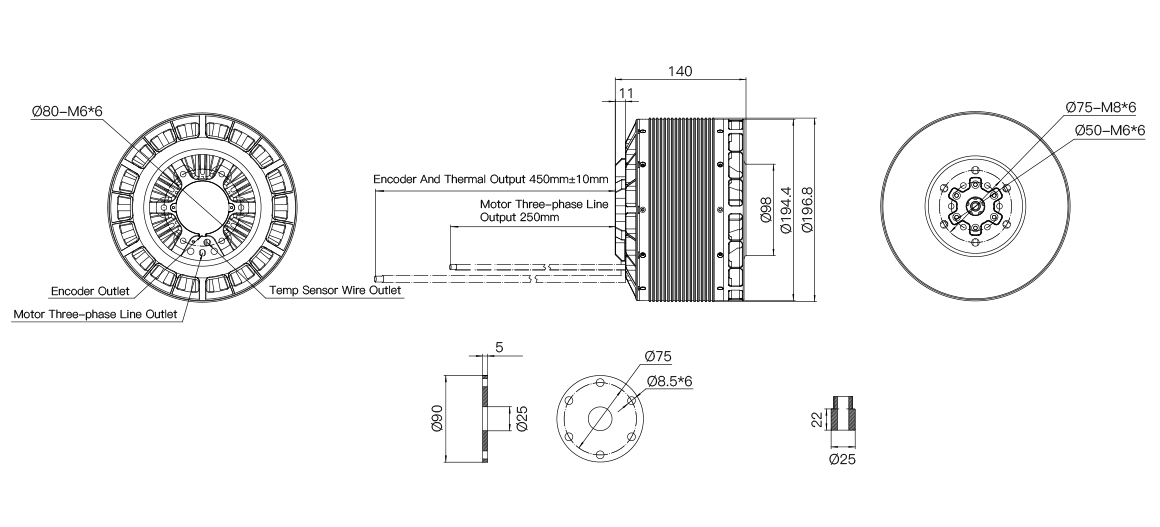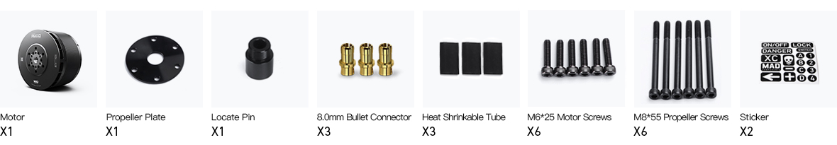 | Propeller Mounting Holes | D:75 M8×6 D:50 M6X6 | Motor Balance | ≤30 mg | ||||||