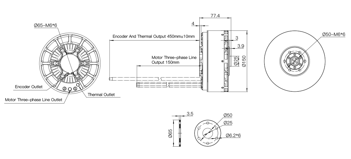 | Shaft Diameter | IN: 25 mm | Motor Mounting Holes | D:65 M6×6 | ||||||