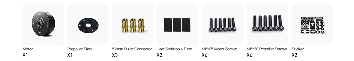 | Propeller Mounting Holes | D:50 M6×6 | Motor Balance | ≤20 mg | ||||||