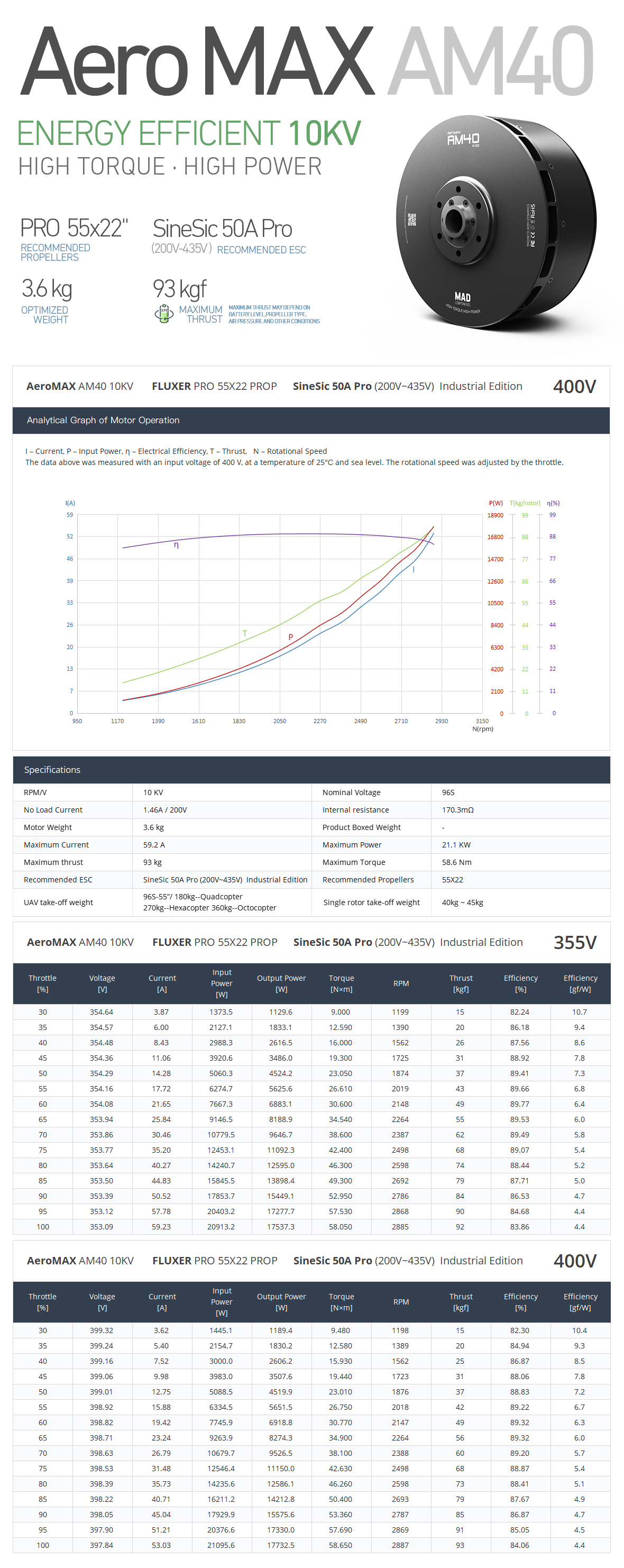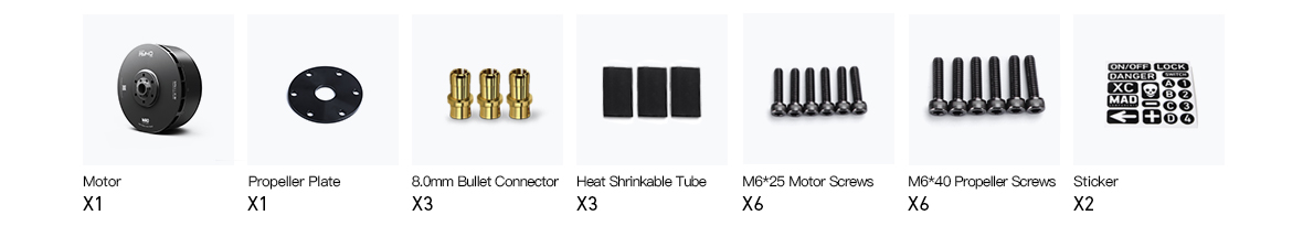| Propeller Mounting Holes | D:50 M6×6 | Motor Balance | ≤20 mg | ||||||