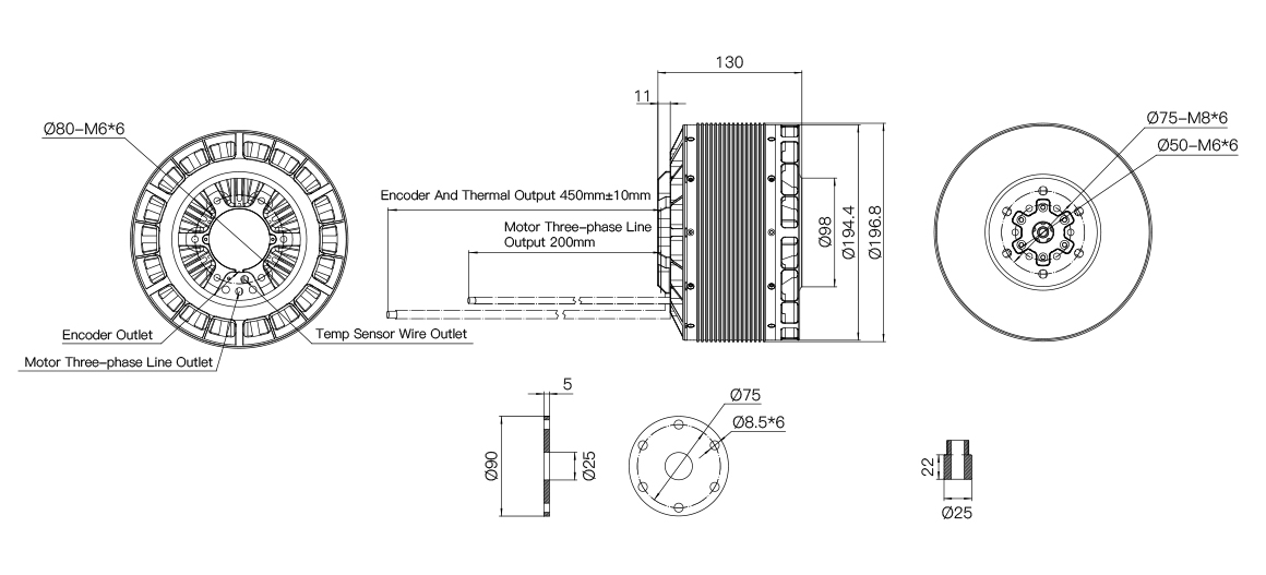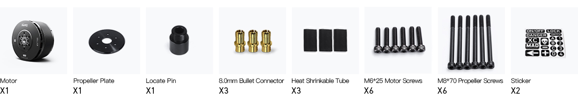 | Propeller Mounting Holes | D:75 M8×6 D:50 M6X6 | Motor Balance | ≤30 mg | ||||||