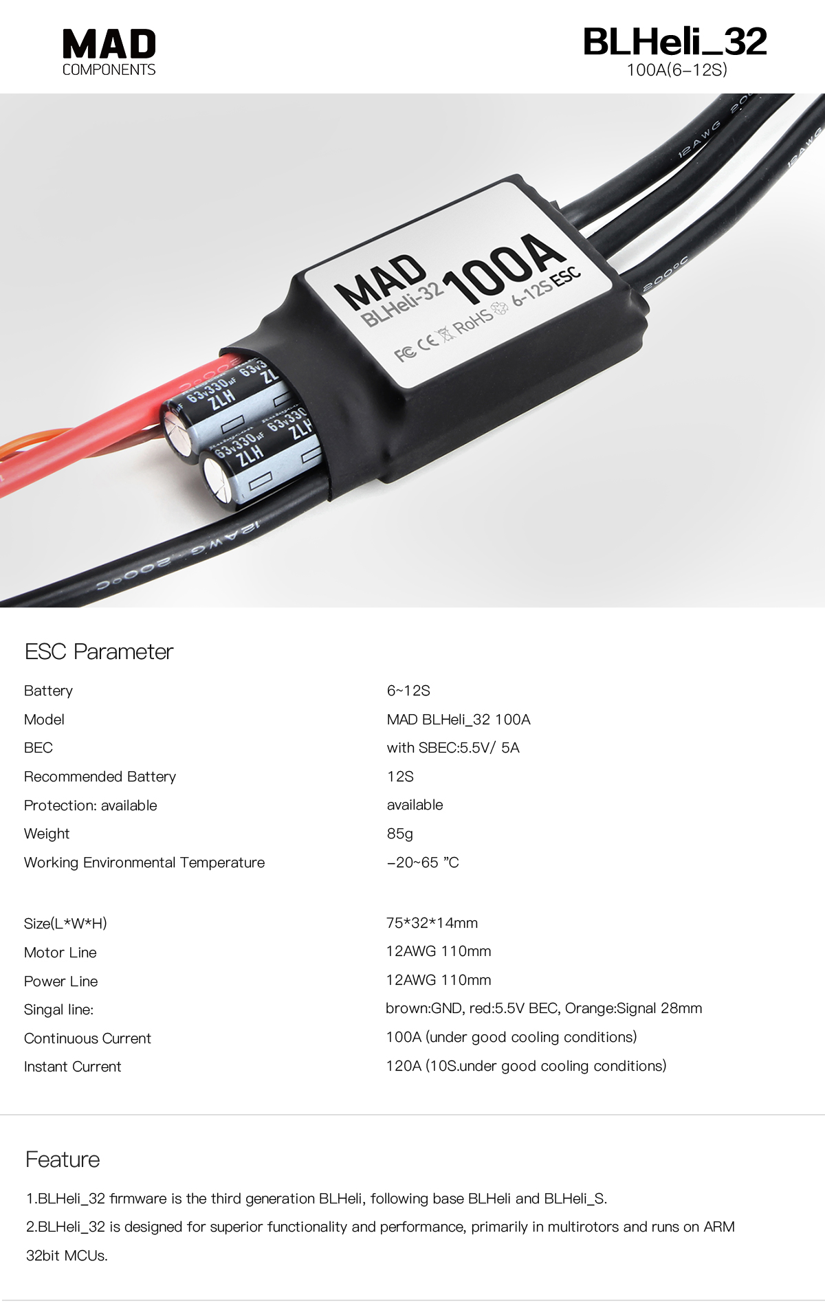 BLHELI IS BETA VERSION,IT CAN'T UPDATED. Because BLHELI32 has stopped service. For BETAFLIGHT4.5 version, it cannot support bidirectional dhsot. It is recommended to order the AM32 firmware version. The BL32 test firmware version flash will be stopped in the future. 100A Quadcopter Controller supports 6-12S. Only weighs 85g with the cooling fin This is the first BL32 customized high-power electric speed controller for x-class FPV, NOT ONLY MORE stable operation AND ALSO LOWER HEATING BLHeli_32 firmware is the third generation BLHeli, following base BLHeli and BLHeli_S. BLHeli_32 is designed for superior functionality and performance, primarily in multirotors.