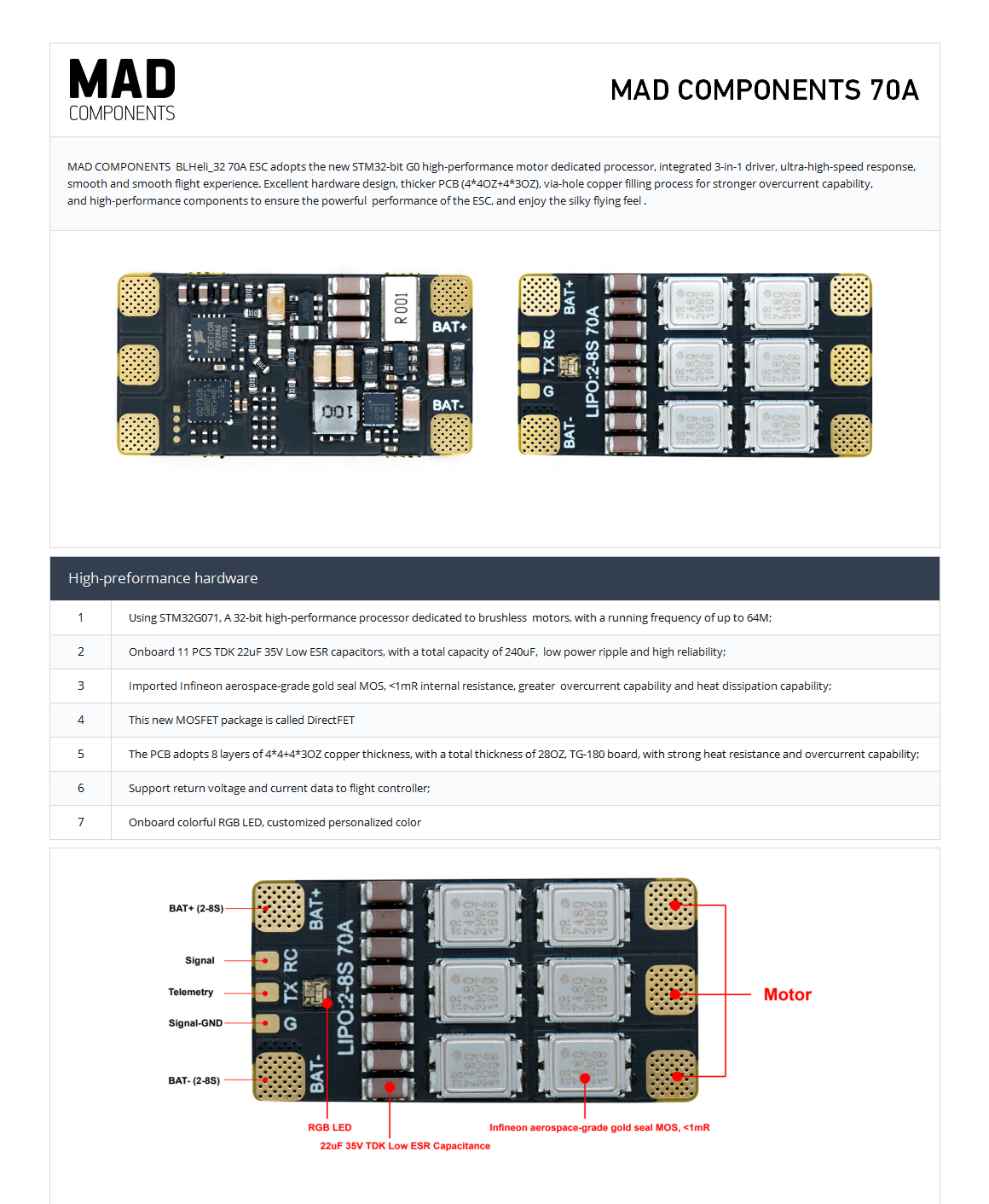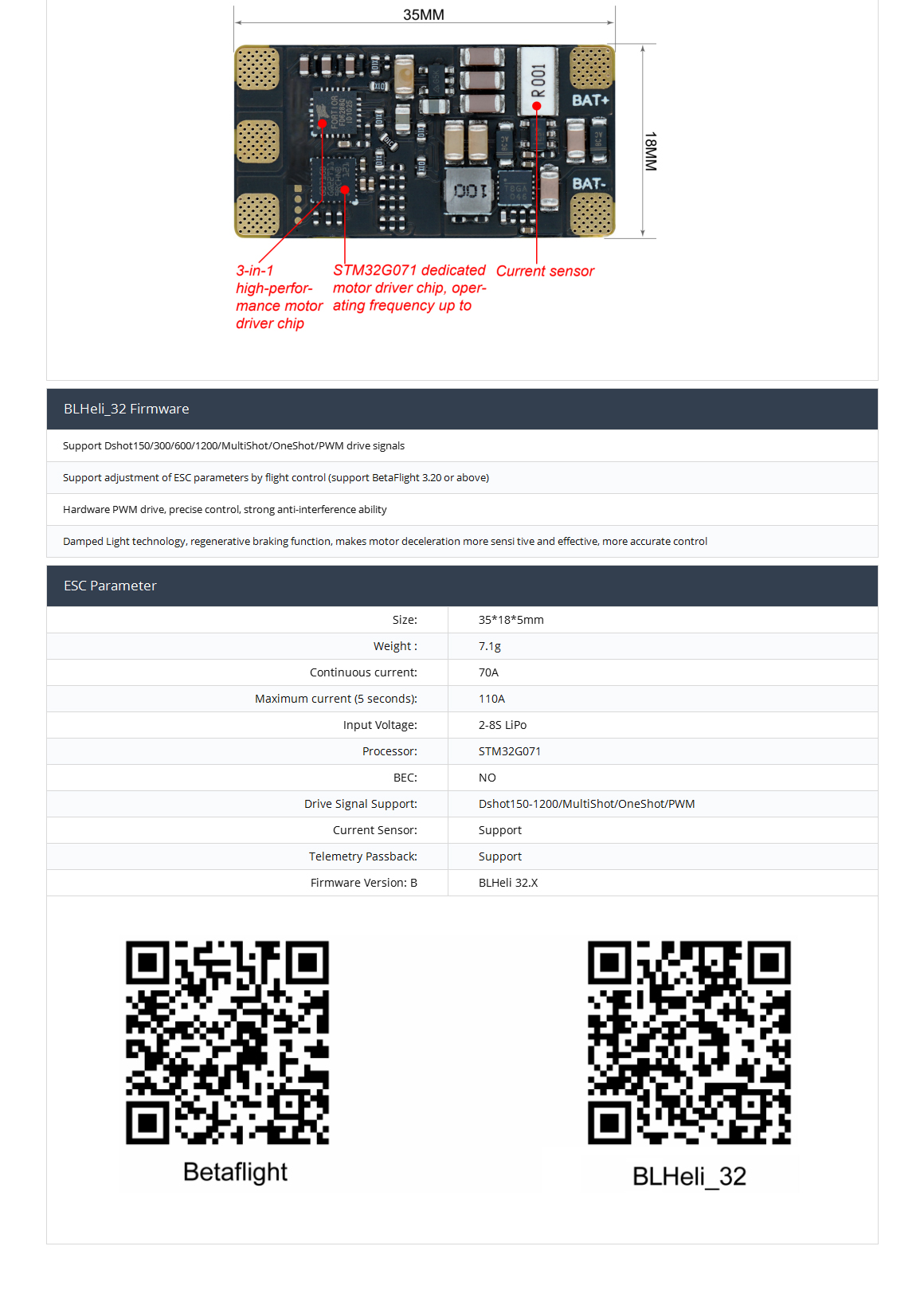 Drive signal support: DShot150-1200/MultiShot/OneShot/PWM