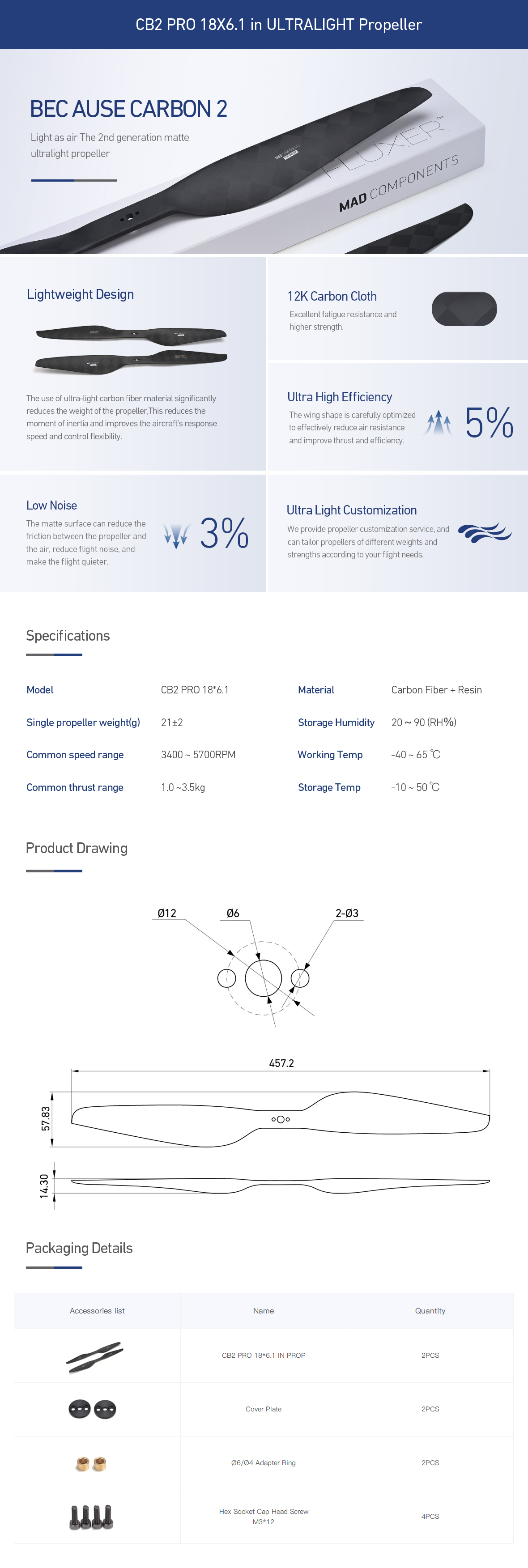 CB2 PRO 18x6.1 inch Carbon Fiber Propeller