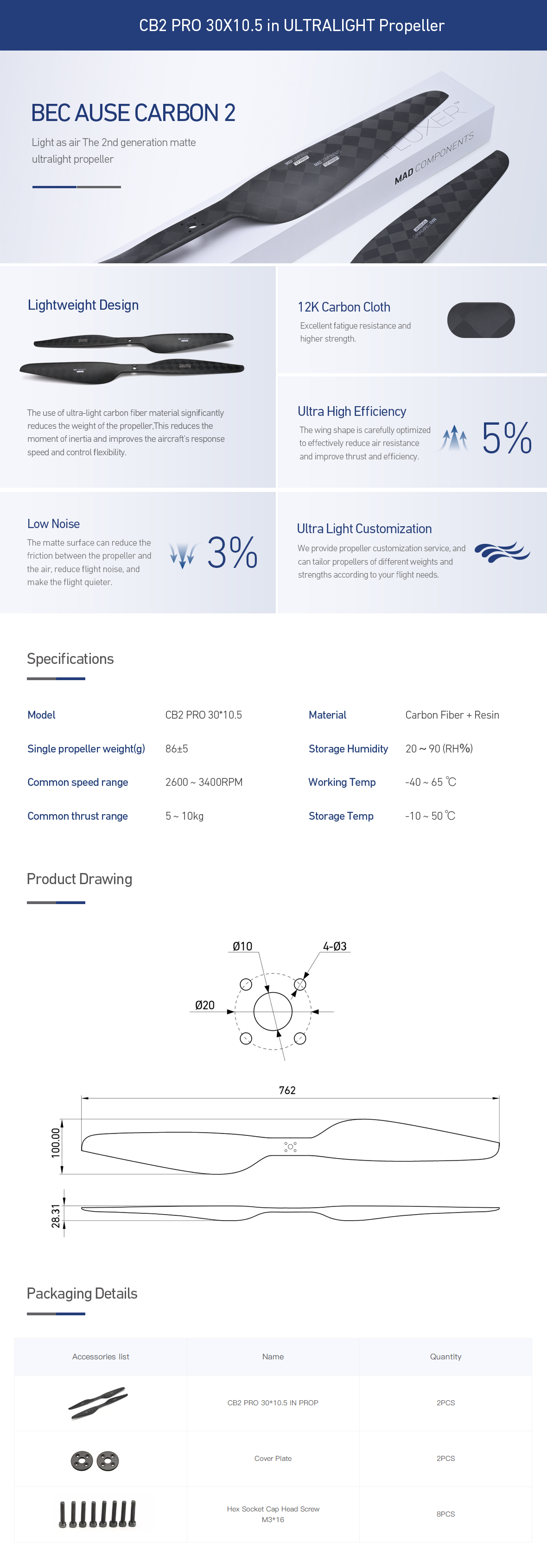 CB2 PRO 30x10.5 inch Carbon Fiber Propeller