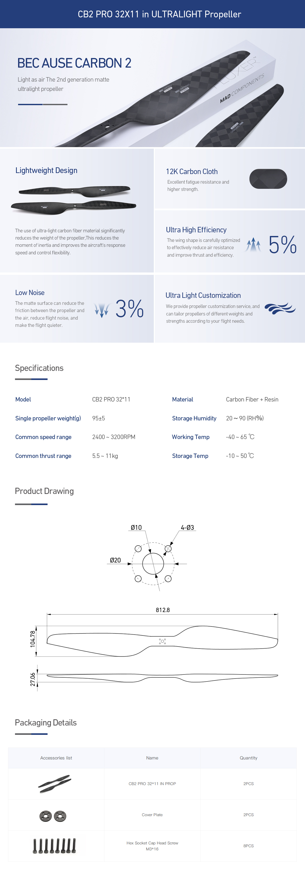 CB2 PRO 32x11 inch Carbon Fiber Propeller