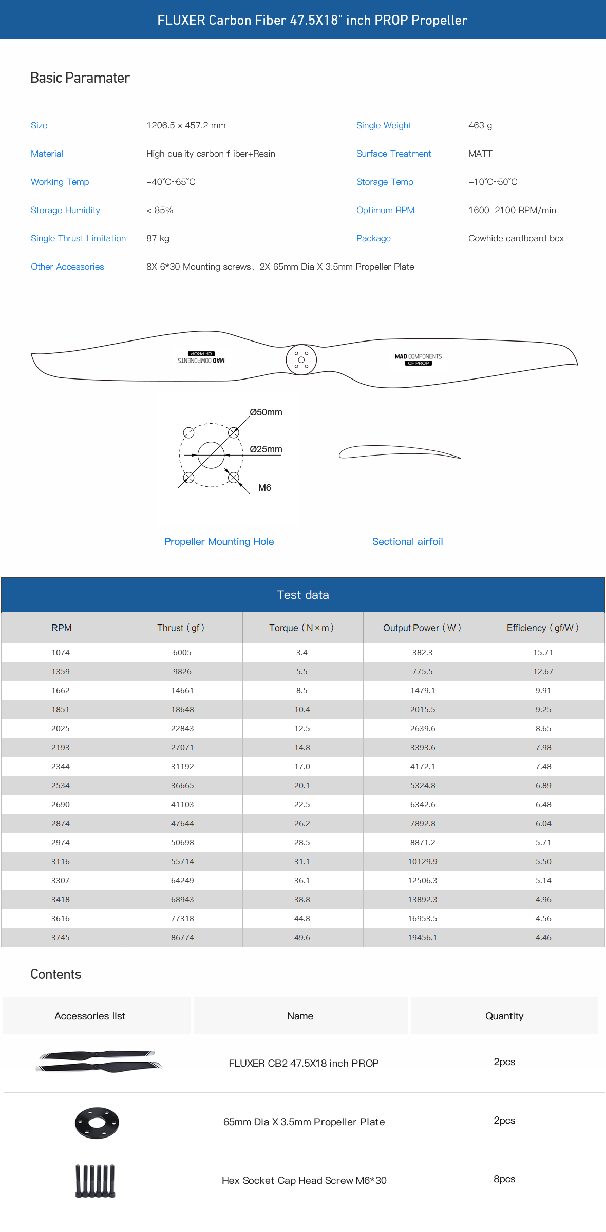 CB2 PROP 47.5X18"inch Carbon Fiber Propeller