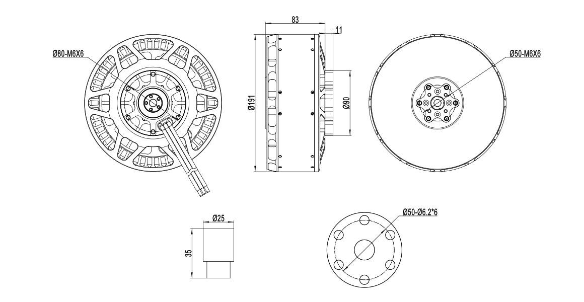 | Shaft Diameter | IN: 25 mm | Motor Mounting Holes | D:80 M6×6 |
