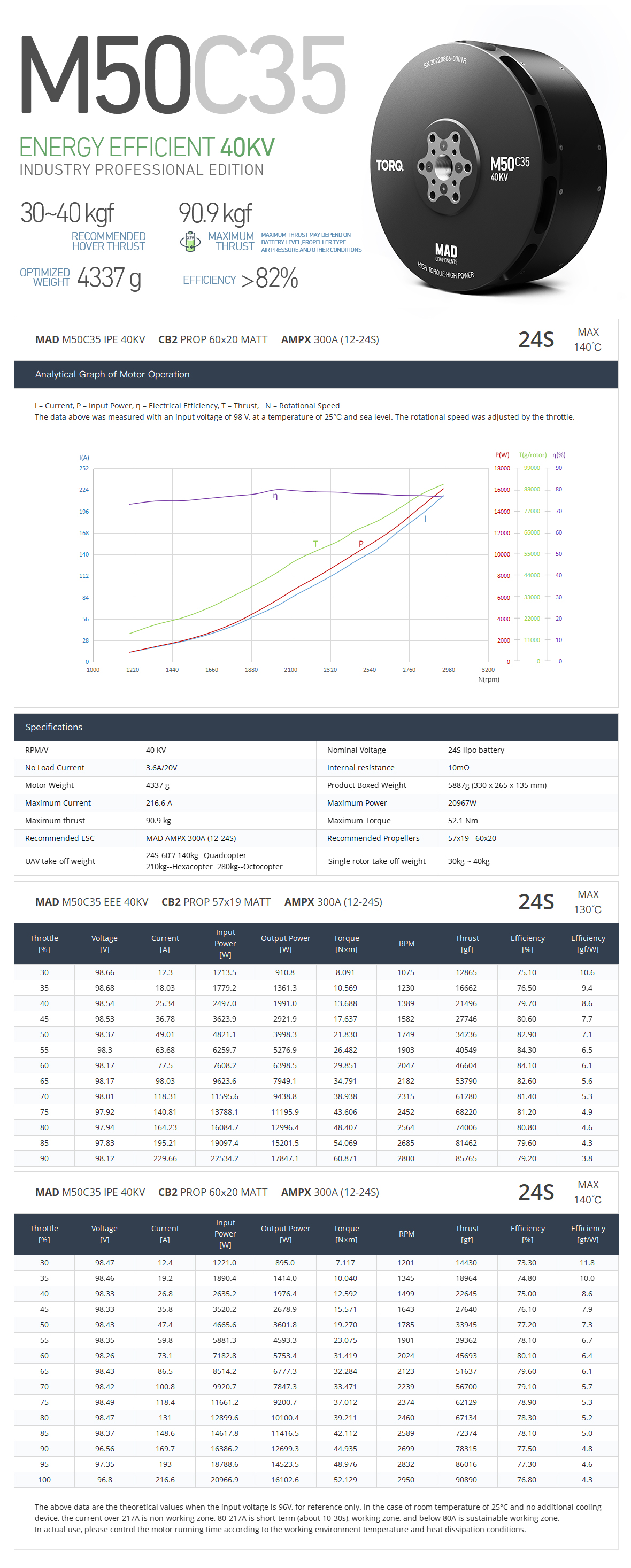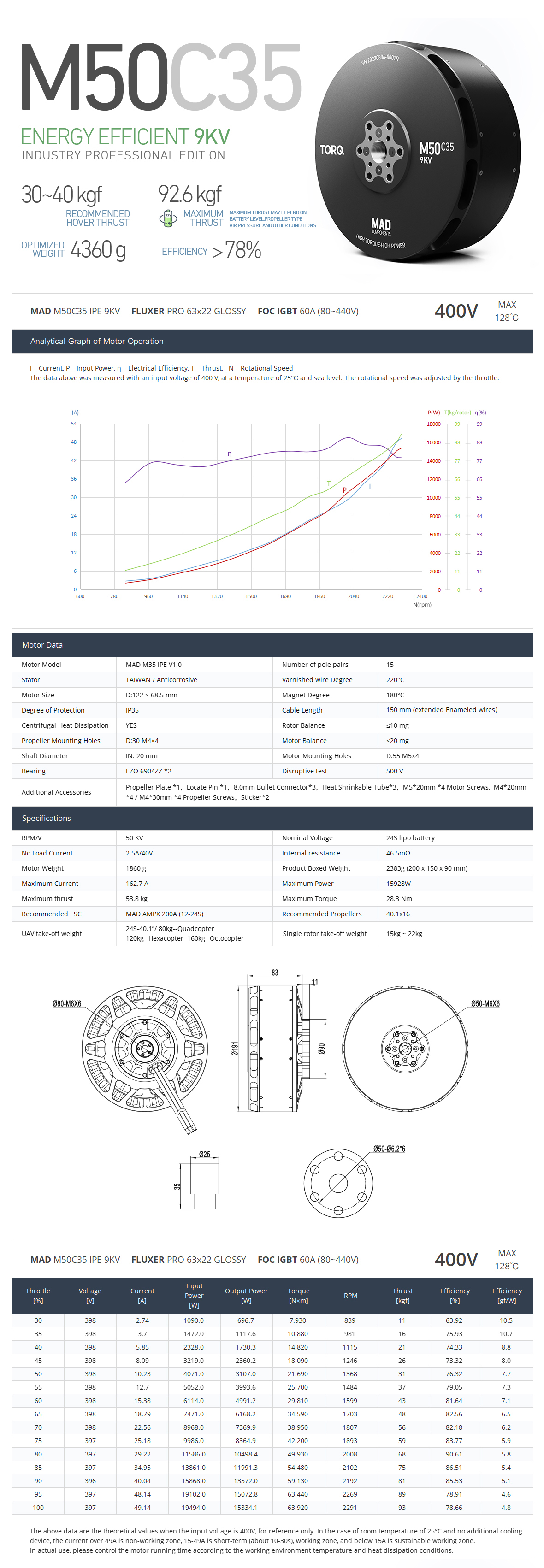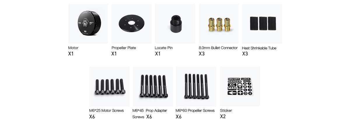 | Propeller Mounting Holes | D:50 M6×6 | Motor Balance | ≤30 mg |