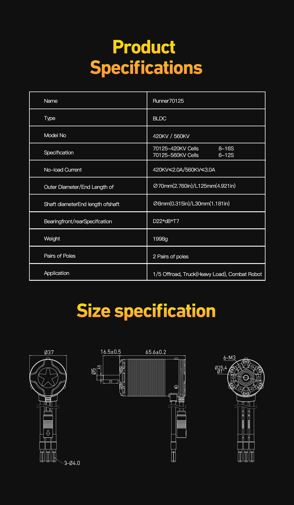 MAD Runner70125 Sensored Brushless 420KV/560KV Motor For 1/5 Rc Cars
