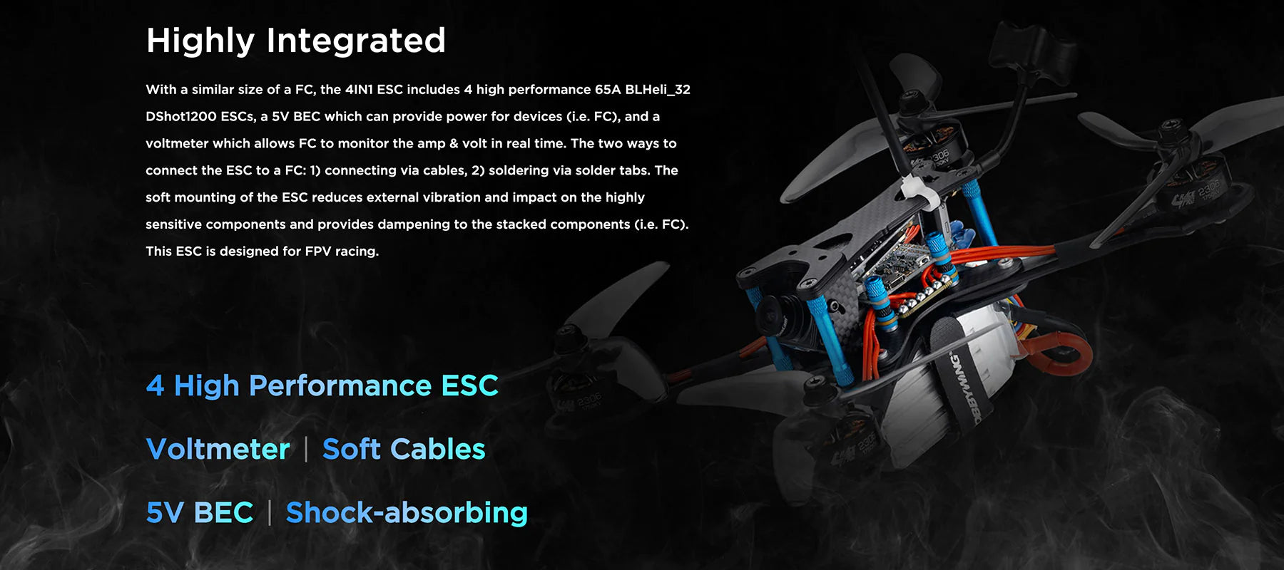 Generation 2 of what some consider the once best ESC. The Hobbywing XRotor G2 65A BLHeli_32 4-In-1 ESC delivers superior power and performance with support for 128k PWM output and Dshot1200. Built with imported MOSFETs and high-quality ceramic capacitors, this ESC is durable and strong enough to survive rough handling in any build.